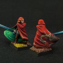 The models hail from Dark Art Studios, their forms echoing the skeletal cavalry of Dark Omen - grim silhouettes clad in tattered grandeur. I remain utterly captivated by the sculpted horse barding and sweeping plumes. Each mount bears the fleur-de-lis, not as a symbol of nobility, but as a relic of lost honor. On their caparisons the motifs are cracked, mud-stained, and eroded by ages - perfectly befitting Mousillon’s tragic heraldry. Their colors, black and sickly yellow, recall banners left too long in the rain, still clinging stubbornly to memory.